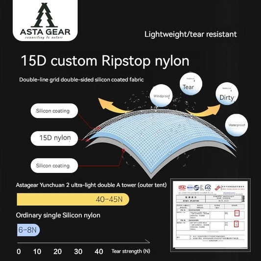 ASTA GEAR Yun Chuan 15D Nylon Ultralight Rodless Tent